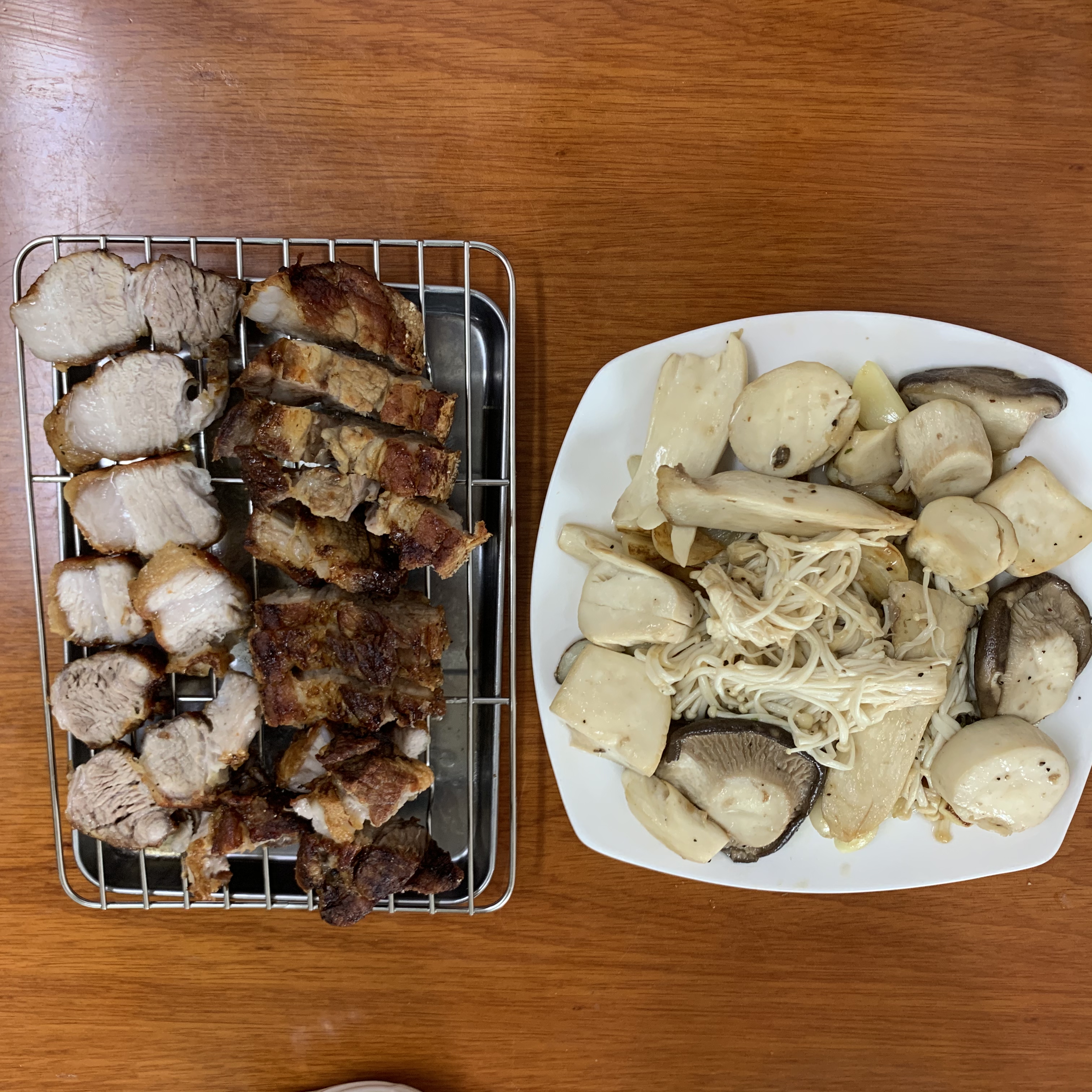 버섯이랑 마늘도 구워줬어요