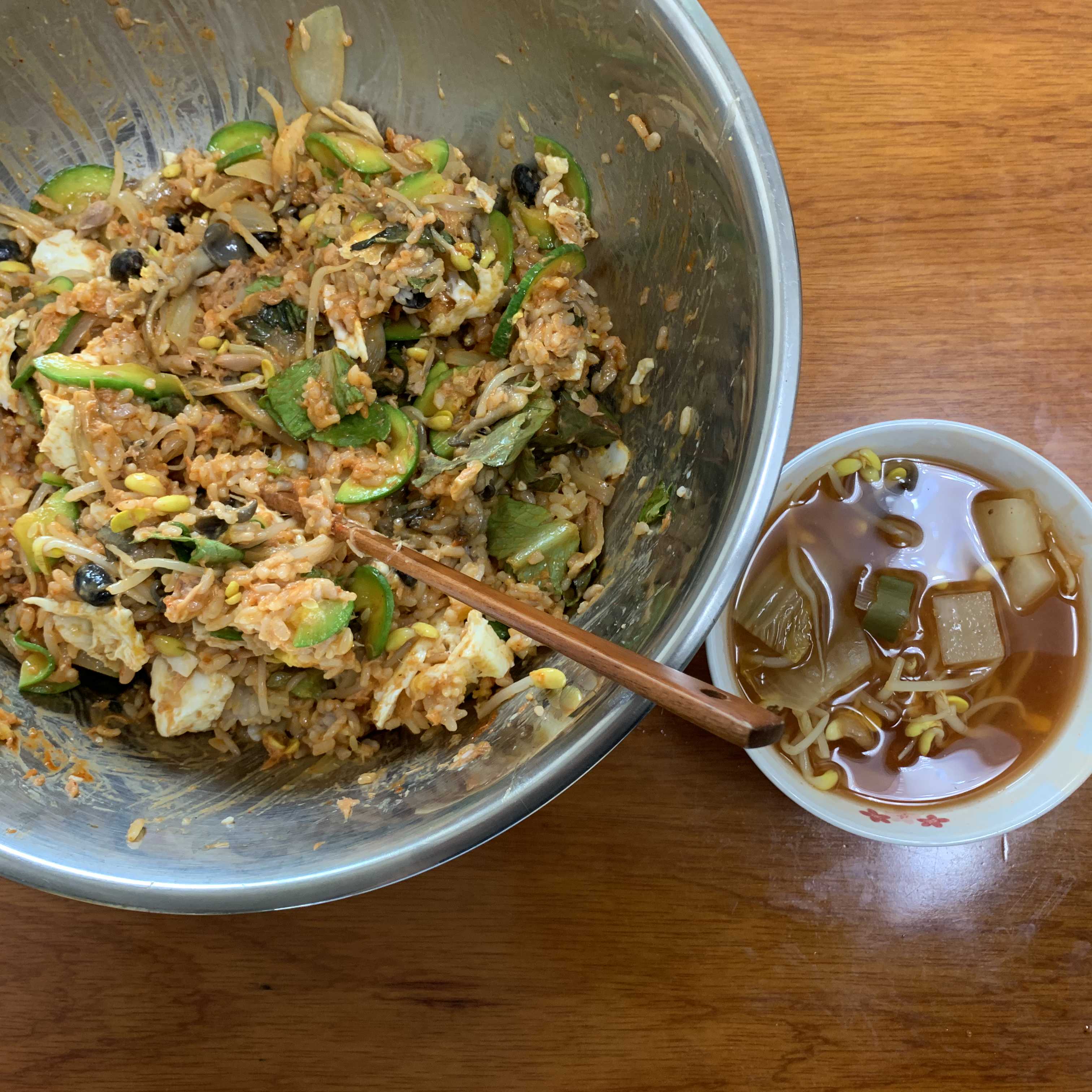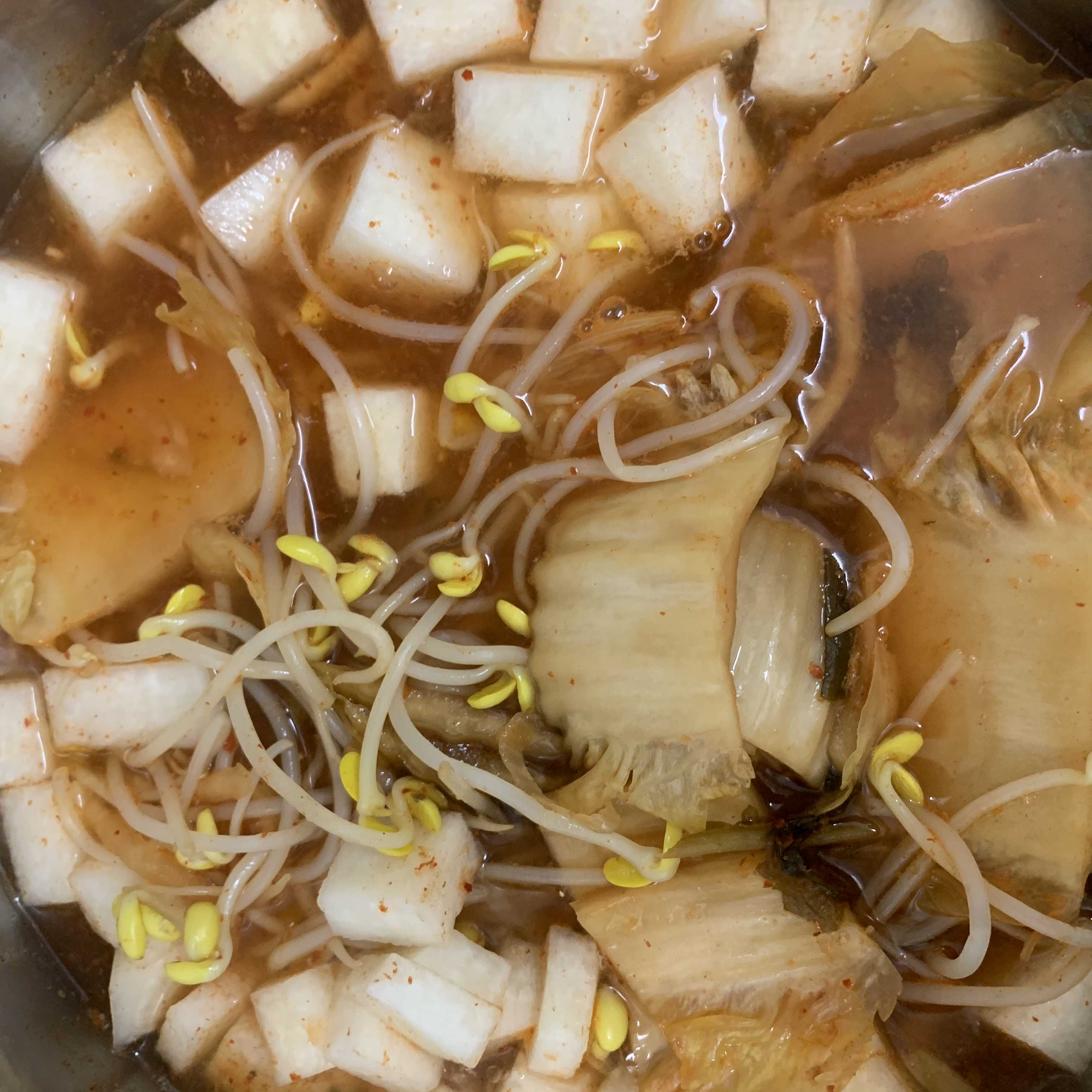 국으로는 김치 콩나물국을 했어요